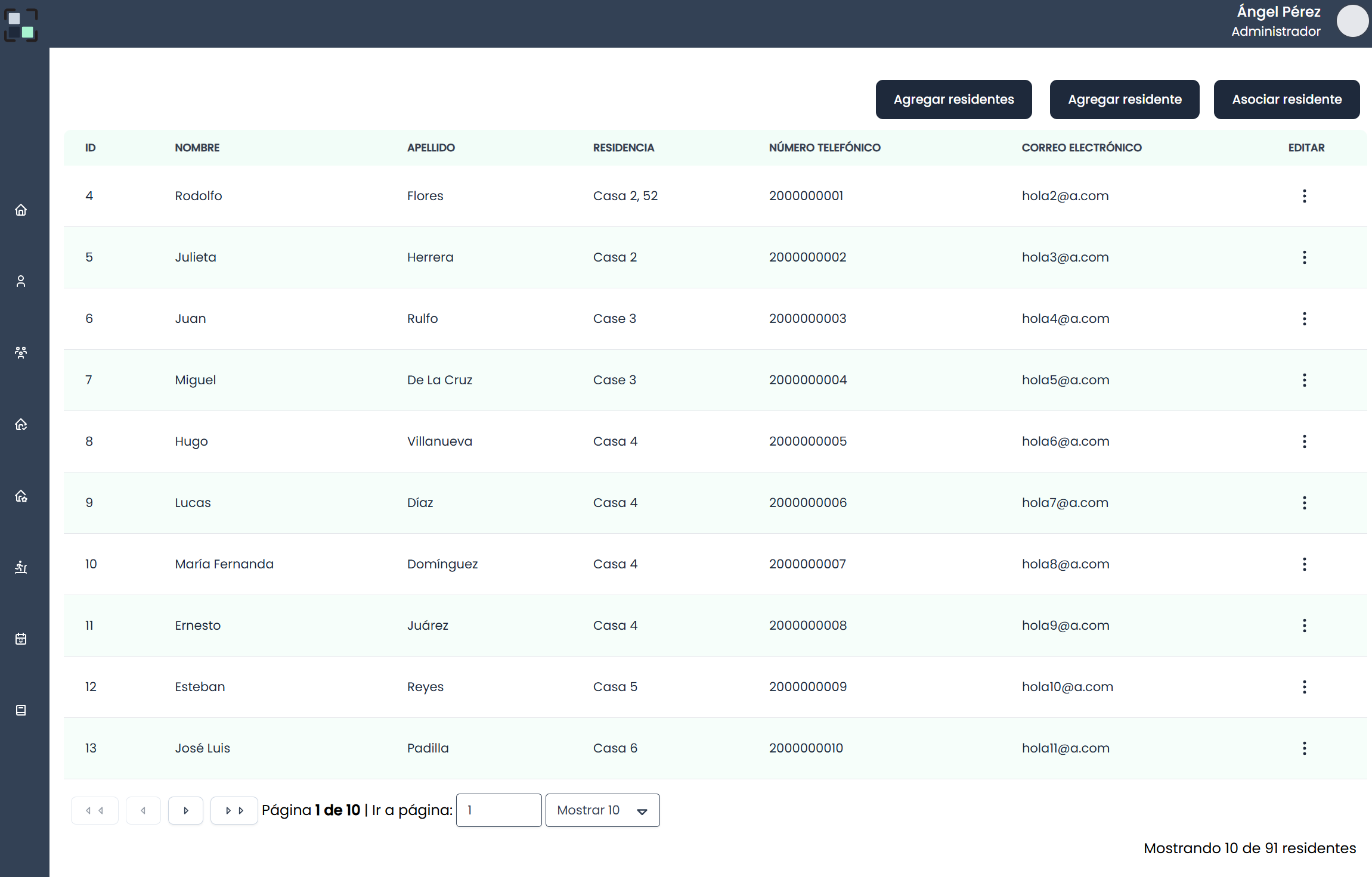 Mantén actualizada la información de todos los residentes, gestiona permisos y comunicaciones directas con los habitantes del residencial.